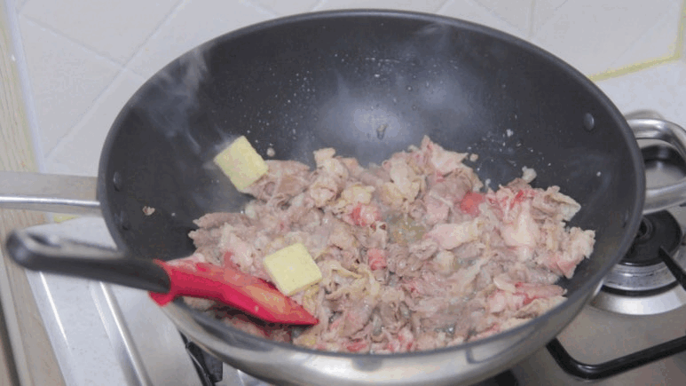 1. 기름에 고기와 마늘을 넣고 분홍빛이 사라질 때까지 볶아주세요