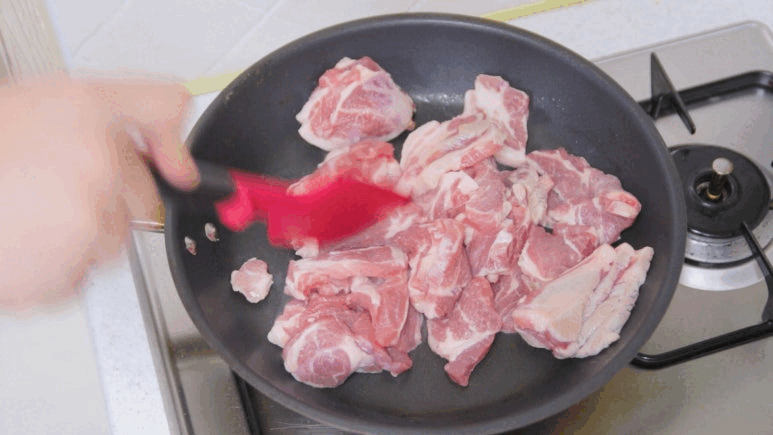 2. 고기를 팬에 넣고 볶아줍니다.